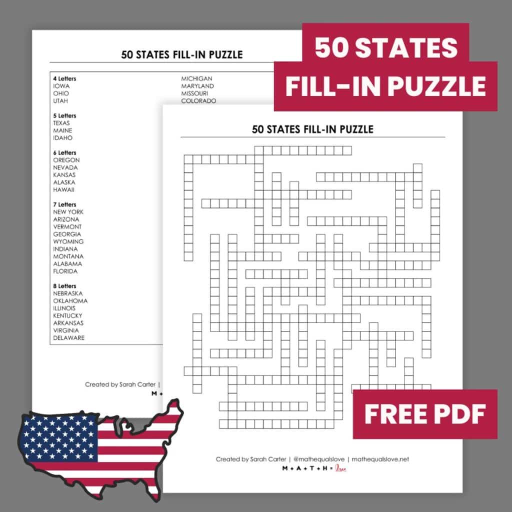 This 50 States fill-in word puzzle is available to download in PDF format.
