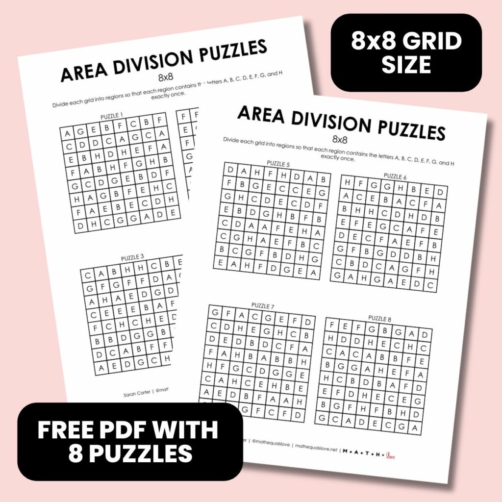 Click here to SAVE the file to your device.8×8 Area Division Puzzles (PPT in ZIP)