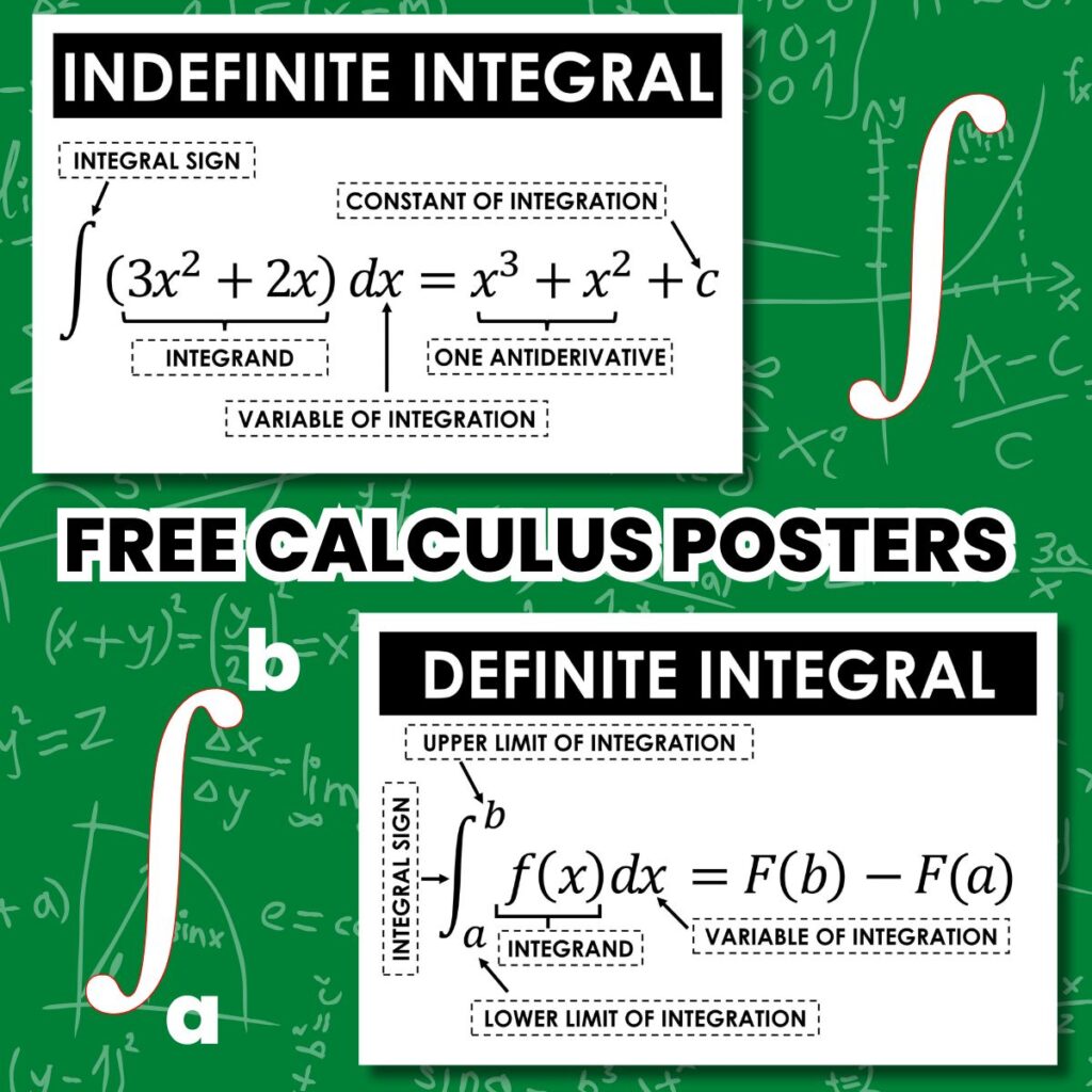 Reinforce proper vocabulary and terms with your AP Calculus students with these free printable parts of an integral posters featuring both definite and indefinite integrals.