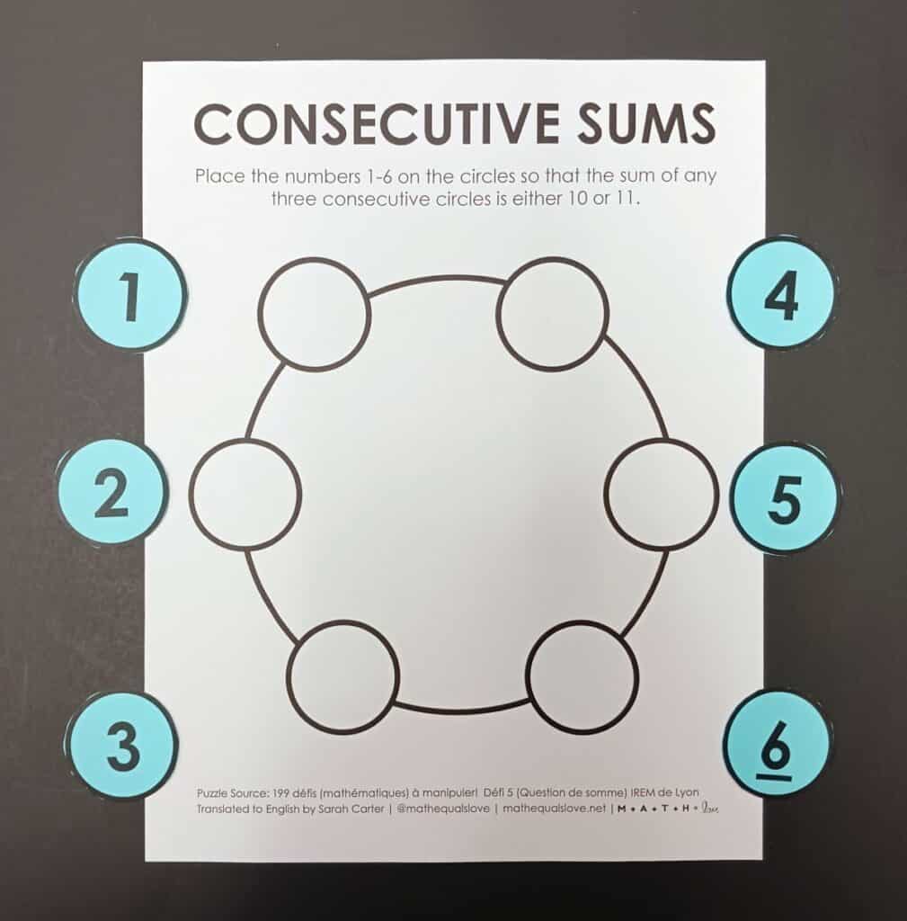 The Consecutive Sums Puzzle is available in both PDF format and as an editable powerpoint file.