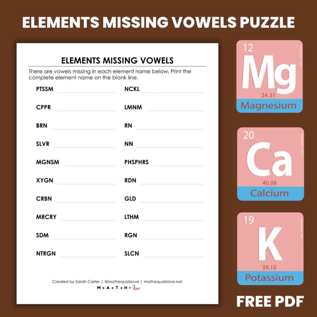 Click here to SAVE the file to your device.Elements Missing Vowels Puzzle (PDF)