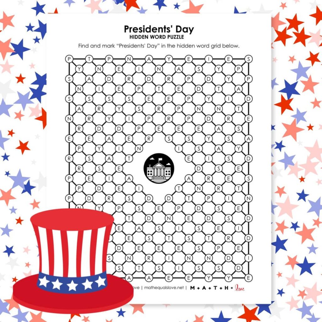 Free Download of Presidents’ Day Hidden Word Puzzle