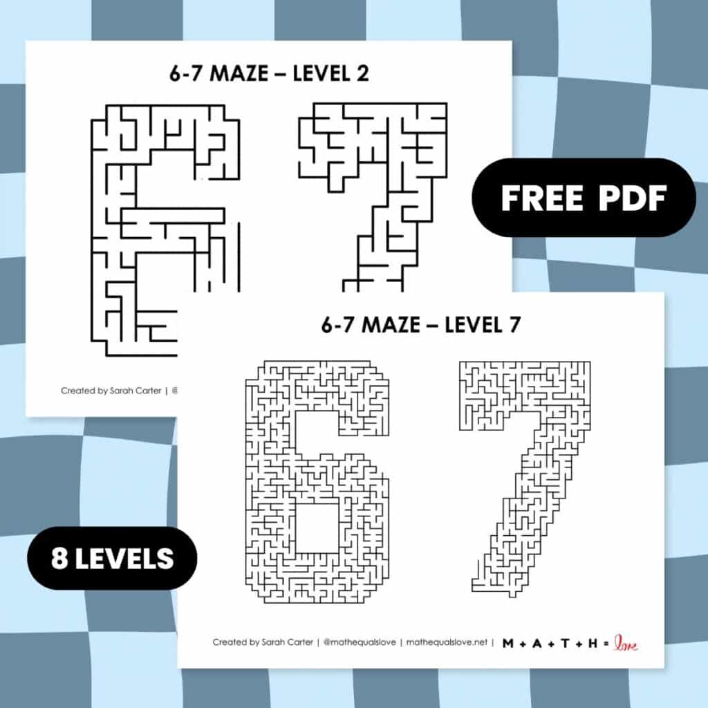There are 8 different levels of difficulty that this 6-7 themed maze can be printed in. All 8 versions are in the same PDF file. Just scroll until you find the level of intricacy that looks right for you or for whomever you are printing the puzzle for.