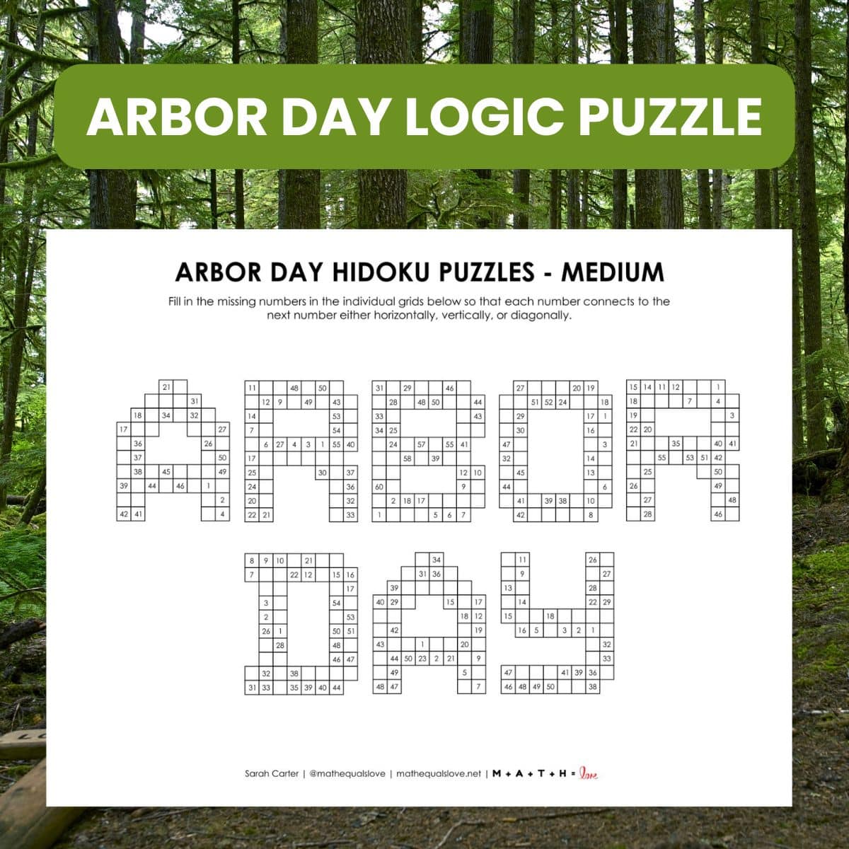 Arbor Day Hidoku Puzzles