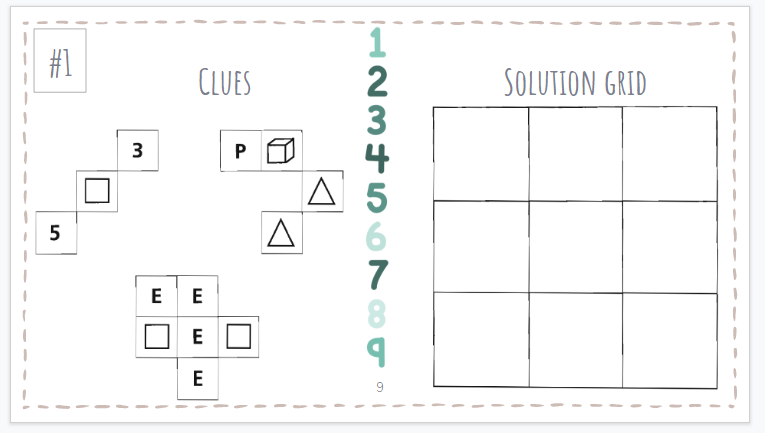 I’ve decided I want to continue my puzzle of the week tradition. I’ll be switching out my traditional magnetic puzzles with pieces to manipulate with puzzles that can be solved using your brain/pencil and paper. Since I have some students who will be in my classroom for the third year in a row, I want to remind them that the puzzle corner is a bit different now thanks to COVID restrictions. I’ll be cutting apart these no touching signs, laminating them, and hanging them up. One is for the puzzle corner. I’m not sure where I’ll use the other 3. Maybe my dry erase boards which have been used by students in the past???